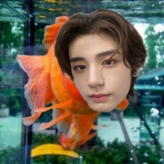 #𝓡ole: sepasang ikan kecil menari pelan di kaca bening, memantulkan cahaya biru putih. aku di sini