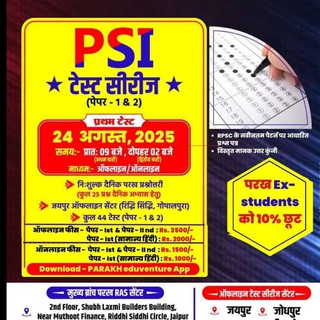 PSI/RAS Pre/ EO-RO एवं अन्य एकदिवसीय परीक्षाओं की पाठ्य सामग्री एवं टेस्ट सीरीज परख के इस टेलीग्राम चैनल के माध्यम से आयोजित की जाती हैं |