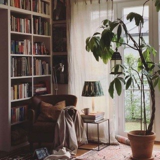 نافذة واسعة، نباتات، كُتب، حياة🤍🌿