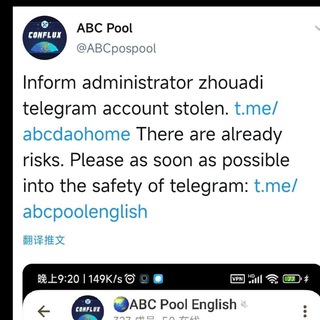 @所有人 管理员zhouadi的电报账号被盗了,大家不要相信私聊,速进安全群TG:https://t.me/abcpoolchinese