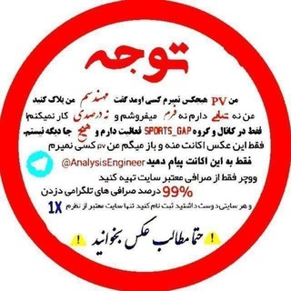 @AnalysisEngineer /من PV کسی نمیرم هرکه آمدنشانی من کلاهبردار فیک،بلاک کنید/من تبانی_درصدی ندارم/خریدفروش ووچر نمیکنم