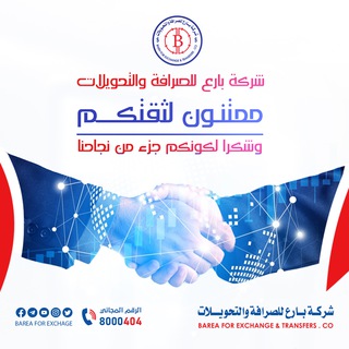 اهلاً بكم في قناتنا الرسمية لشركة بارع المصرفيه نُقدم لكم هنا خدمات إضافية ايضاً تقارير باسعار العملات الاكثر تداولاً في المنطقه يمكنكم الاطلاع على اهم التنويهات لدى الشركة شركة وشبكة بارع تتميز دوماً بخدماتها المتطورة في عالم الصرافة