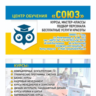 Тула. Центр обучения Союз. Курсы: менеджмент, бухгалтерия, дизайн, компьютерные, курсы творчества, курсы красоты и другие.