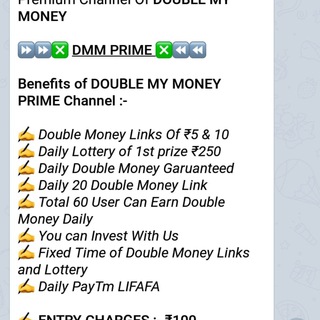 Get Entry in DOUBLEMYMONEY Prime Channel For Daily Benefits !