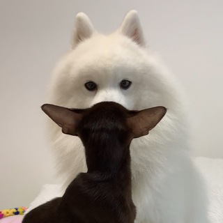 Ориентальная кошка Йолли и её пушистый друг японский шпиц Азарни 😈❤️👻