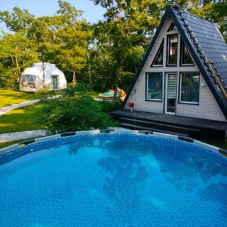 Наш глемпинг состоит из 3 жилых сфер (геокуполов) домов в стиле А-фрейм, хай-тек и барн хаус