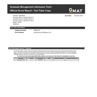 Respublikada Matematiklar orasida birinchi GMAT hamda GRE general sertifikati sohibi Rahimov G'ayrat Shuhrat oʻgʻlining GMAT va GRE va SAT imtihonlariga tayyorlov guruhi.
