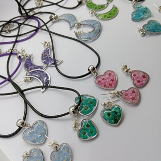 Украшения ручной работы из эпоксидной смолы с настоящими цветами.