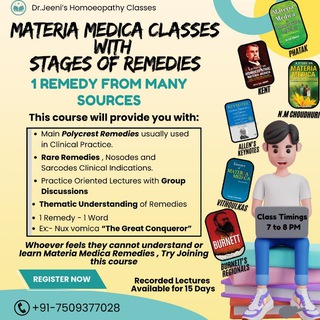 Dr.Jeeni's Homoeopathy Clinical Classes right away.