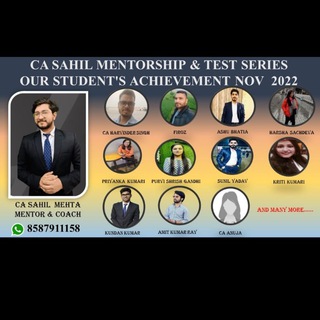 CA Sahil Mehta Mentorship & Test Series For registration- whatsapp( 8587911158 )