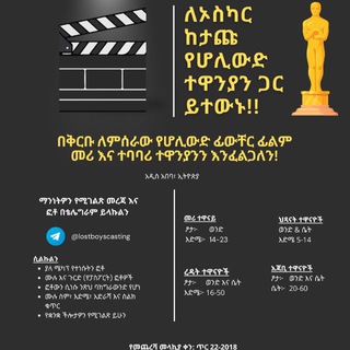 ለተዋናይነት ለማማልከት በዚህ ቴሌግራም አካውንት መረጃዎን ይላኩ::