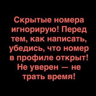 СКРЫТЫМ/НОВЫМ НОМЕРАМ НЕ ОТВЕЧАЮ! С 10 ДО 22Х, НОЧЬЮ СПЛЮ.