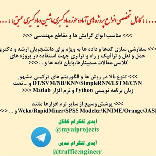 @trafficengineerانواع پروژه ها در زمینه یادگیری ماشین و یادگیری عمیق توسط زبان پایتون و شامل الگوریتم های معروف DT/SVM/NB/KNN/SimpleRNN/LSTM/CNN و ... و فراابتکاری ها