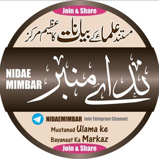 ٹیلی گرام پر مستند علماء کرام کے جدید (خطباتِ جمعہ، تفسیر قرآن، درسِ حدیث، مسائل کے حل، درسِ نظامی، و دیگر) مکمل بیانات کیلئے ندائے منبر چینل سے منسلک ہوں