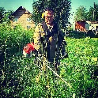 Сибирский косарь. Покос травы, скос, скашивание на участке, даче, огороде. Косим траву триммером.