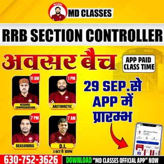 यह टेलीग्राम ग्रुप RRB SECTION CONTROLLER, अवसर बैच के विद्यार्थियों के लिए बनाया गया है, जो आज से रोज रात 9:00 बजे से 10:00 बजे तक खुला रहेगा ,