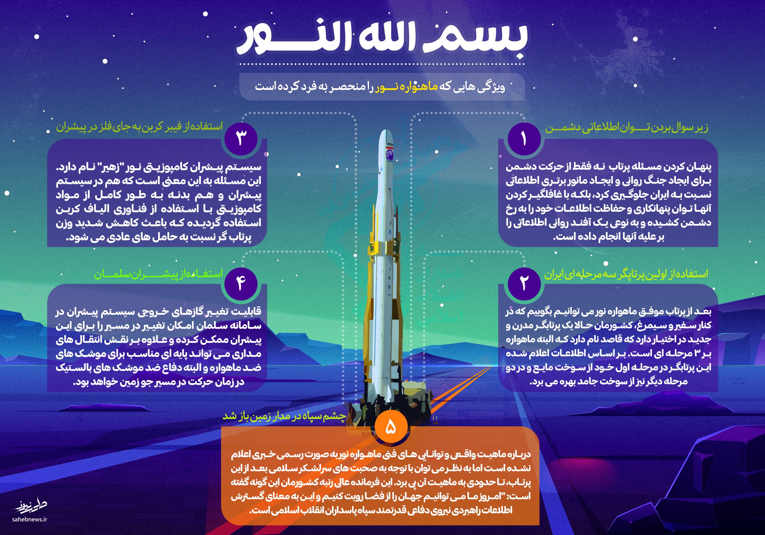 💠 در کنار خبر موفقیت آمیز بودن این پرتاب، یک نکتۀ مهم نیز ذهن متخصصان و فعالان رسانهای به خود جلب کرد. در ماه های پیش از پرتاب نور، دولت آمریکا جوّ روانی خاصی در حوزۀ فضایی ایران راه انداخته بود و پیش از هر پرتابی با انتشار تصاویر ماهوارهای، از اشراف خود به برنامه های فضایی ایران خبر می داد. در مواردی نیز تصاویری از انفجار در سکوهای پرتاب فضایی ایران منتشر می کرد.
