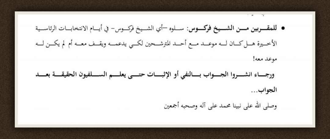 فهذا إن صحّ أن يكون فهو في حقّ شيوخكم من باب أولى ، و هو في حقّكم كقناة معوجة أولى و أولى و أولى ... فالشيخ فركوس شيخ شيوخكم و هو أعلم منهم و من غيرهم بشهادة الجميع ...