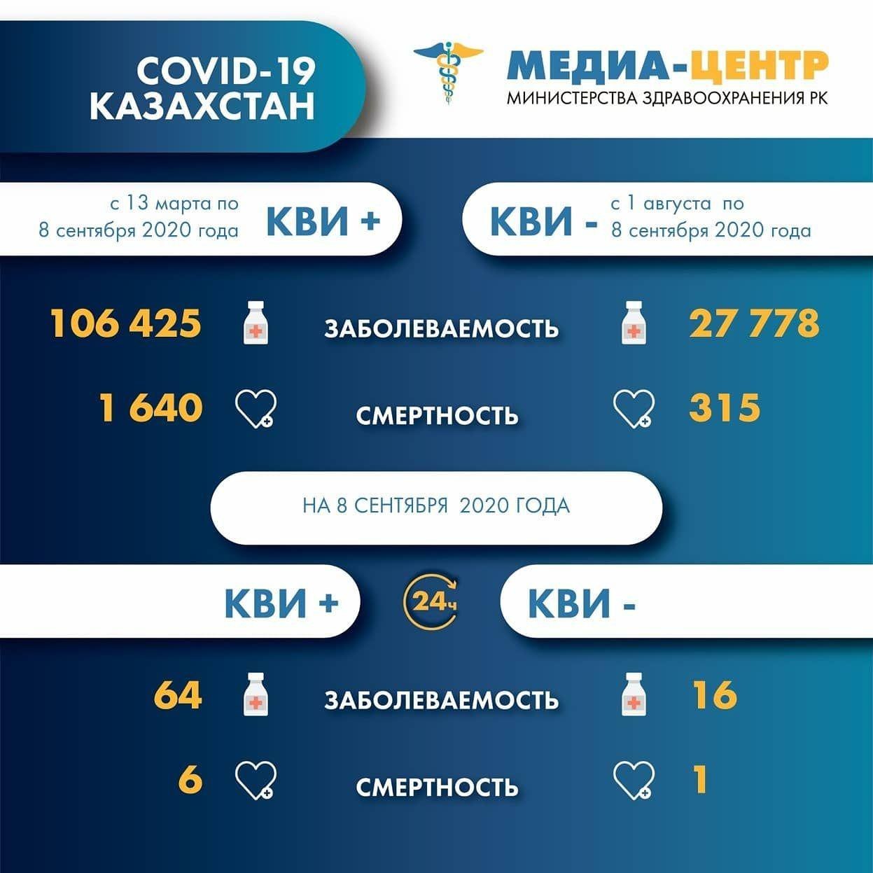 🖤 46 случаев с летальным исходом от коронавирусной инфекции зарегистрированы с 31 августа по 6 сентября в Казахстане