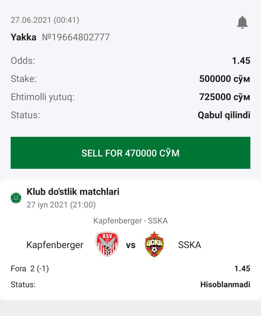 ๐ฅStavka: 1-ning yakka totali (0.5) dan Koโp