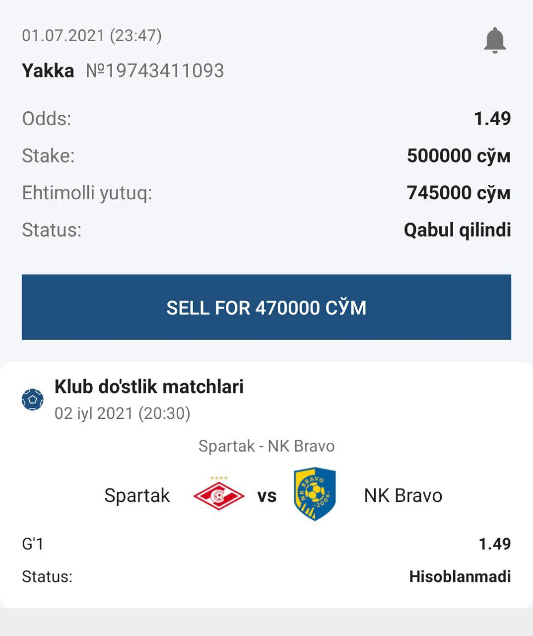 Oโtish ehtimoli 90% ๐ 1XBET KOD: XVR4H ๐ LINE BET KOD: QJR4H ๐ฐBankdan 20%dan koสปp tikmang! โฐOโyin vaqti: 21:00 @ASS_club bilan stavka qiling!