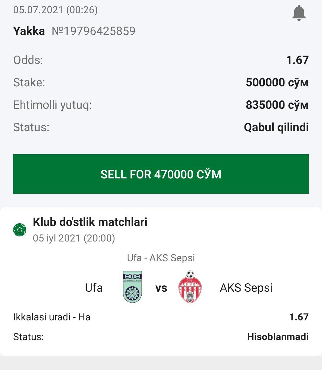 ๐ต Ufa vs AKS Sepsi