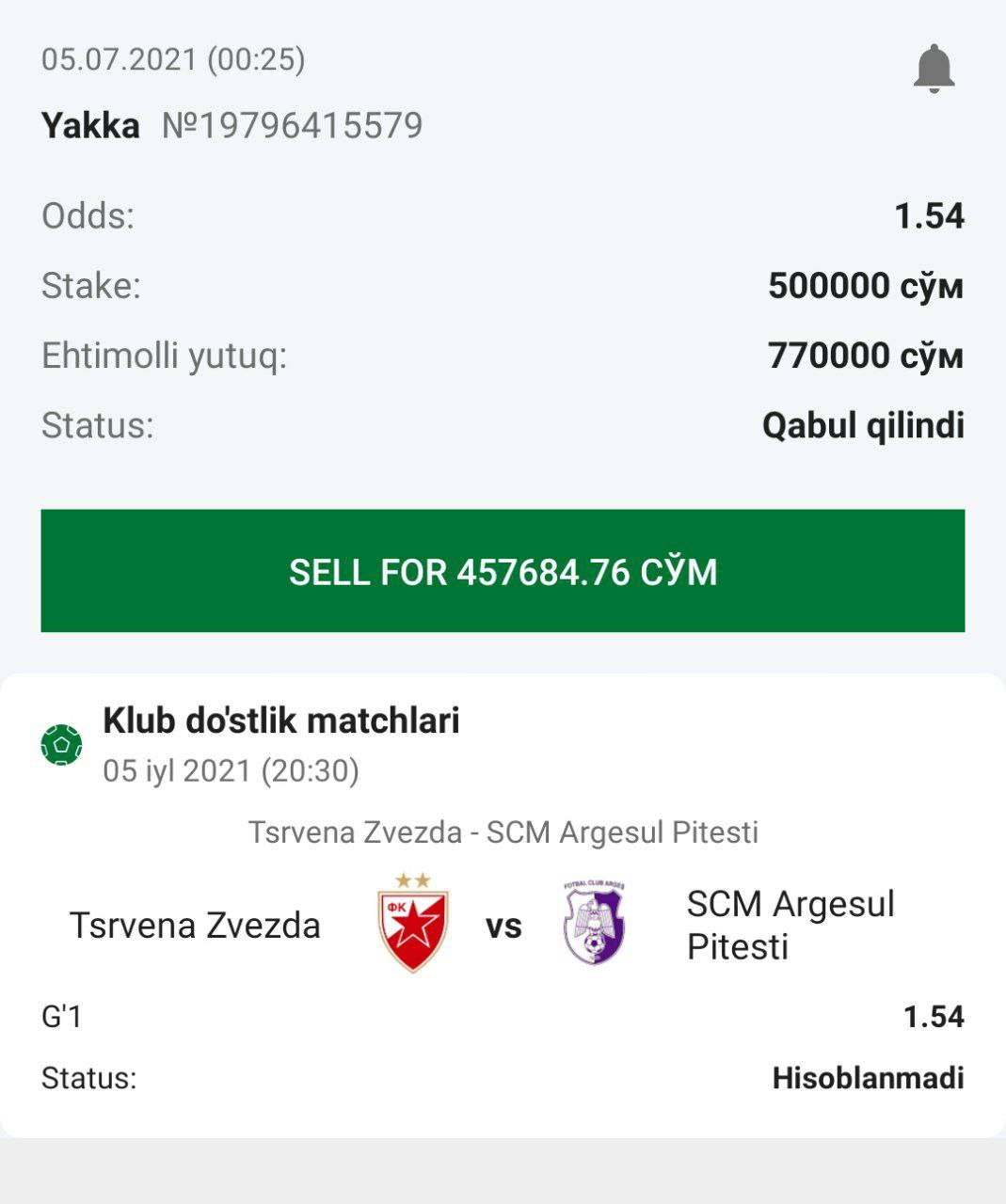 ๐ฅStavka: 1-ning yakka totali (0.5) dan Koโp