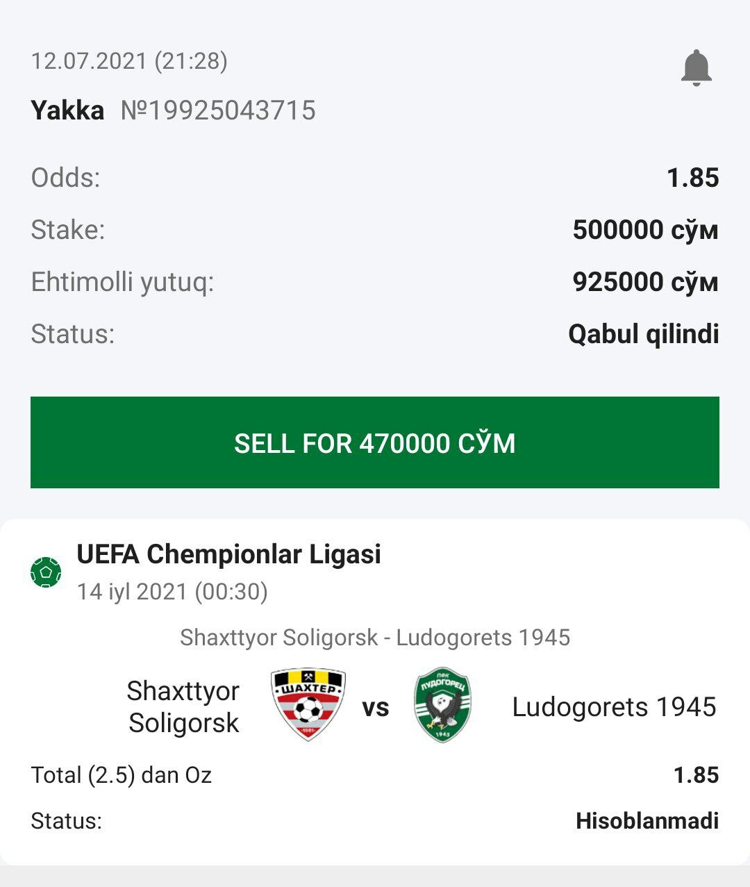 ๐ฅStavka: Total (1.5) dan Koโp