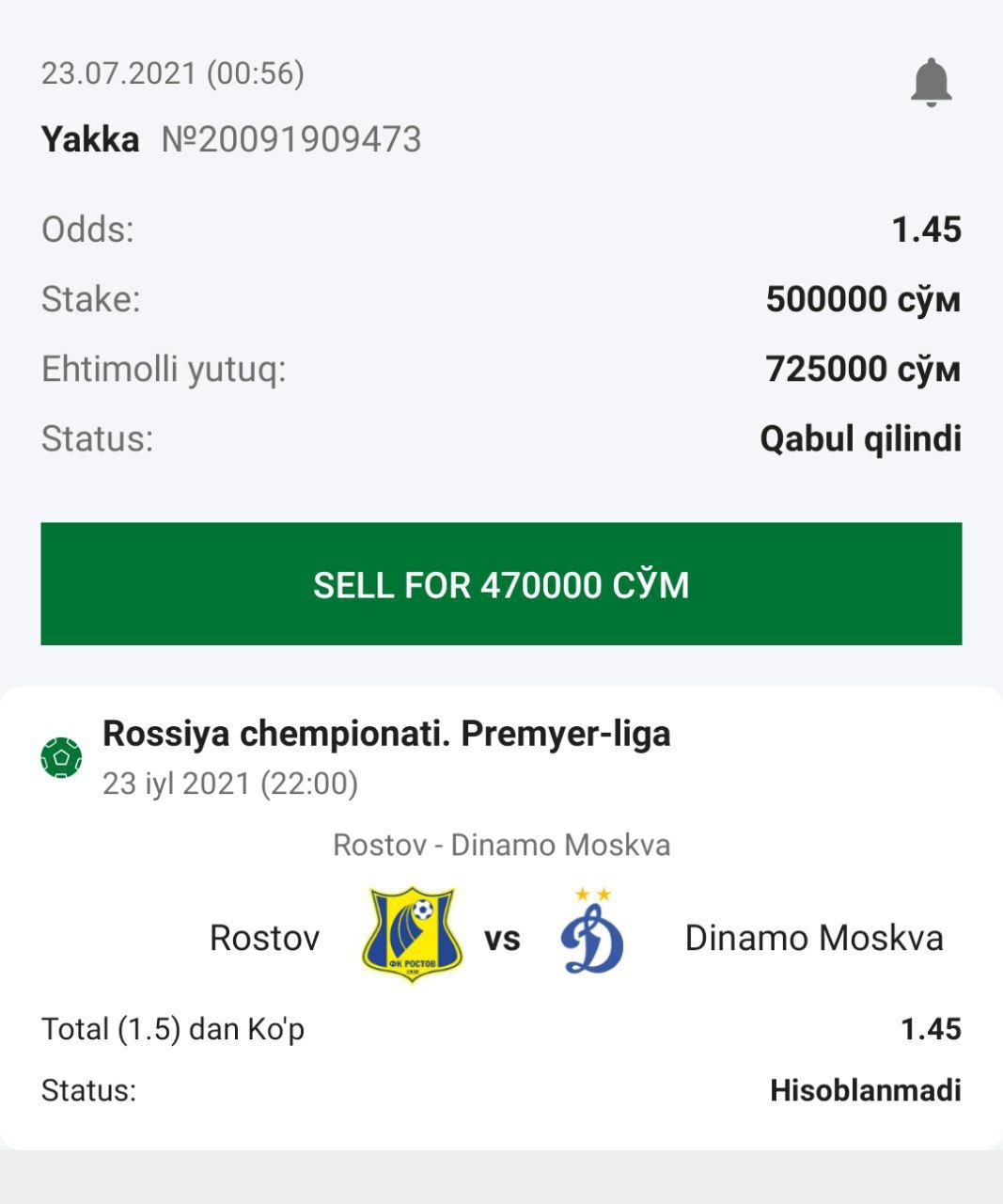 ๐ฅStavka: Total (1.5) dan Koโp