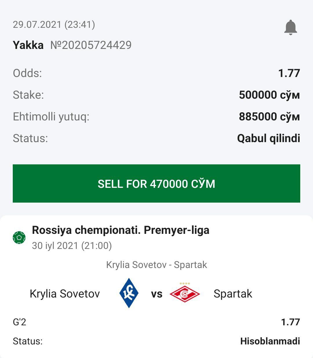 ๐ต Krylia sovetov vs Spartak