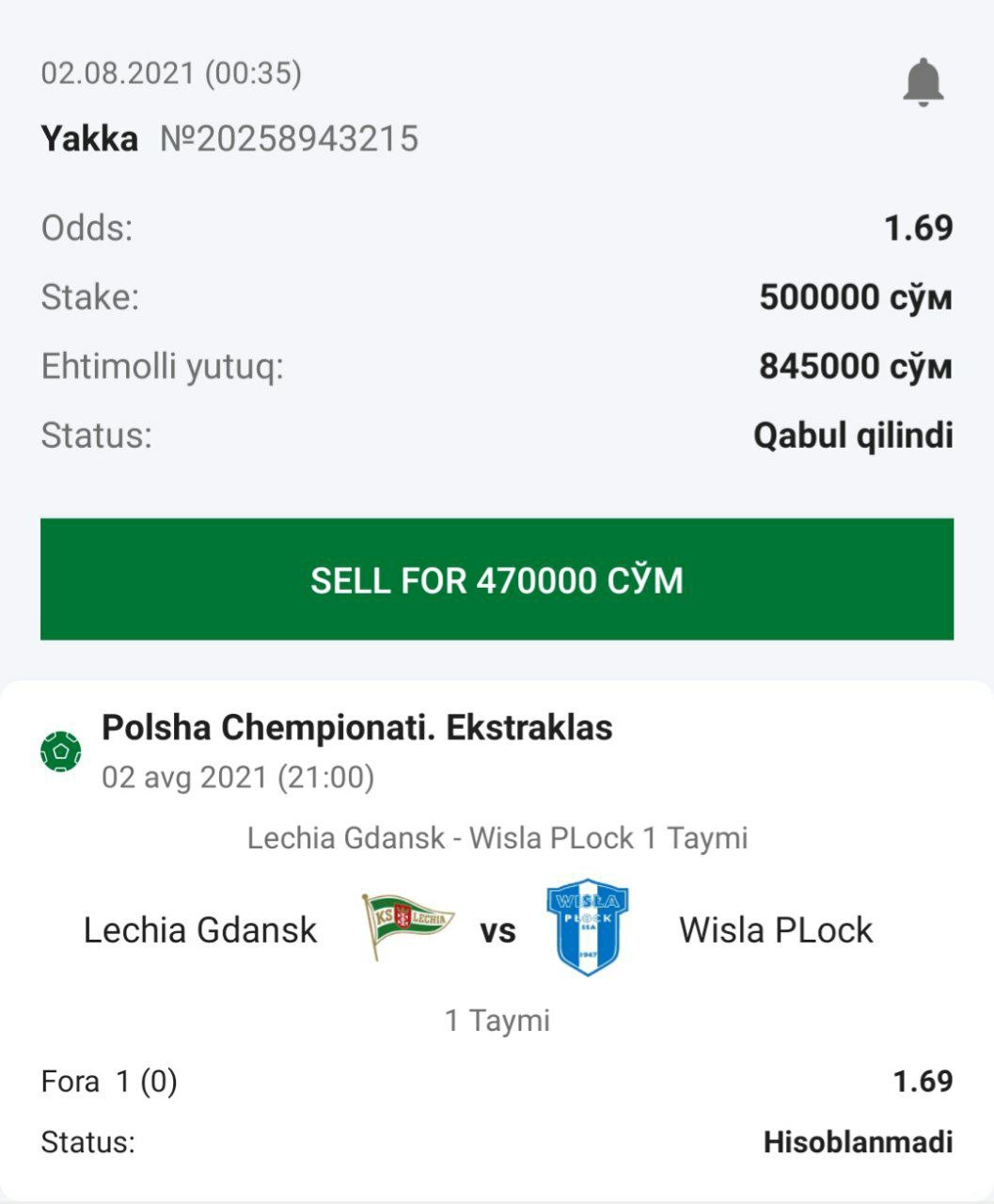 ๐ฅStavka: 1-jamoa (2) va undan koโp golni ketma-ket uradi - Yoโq