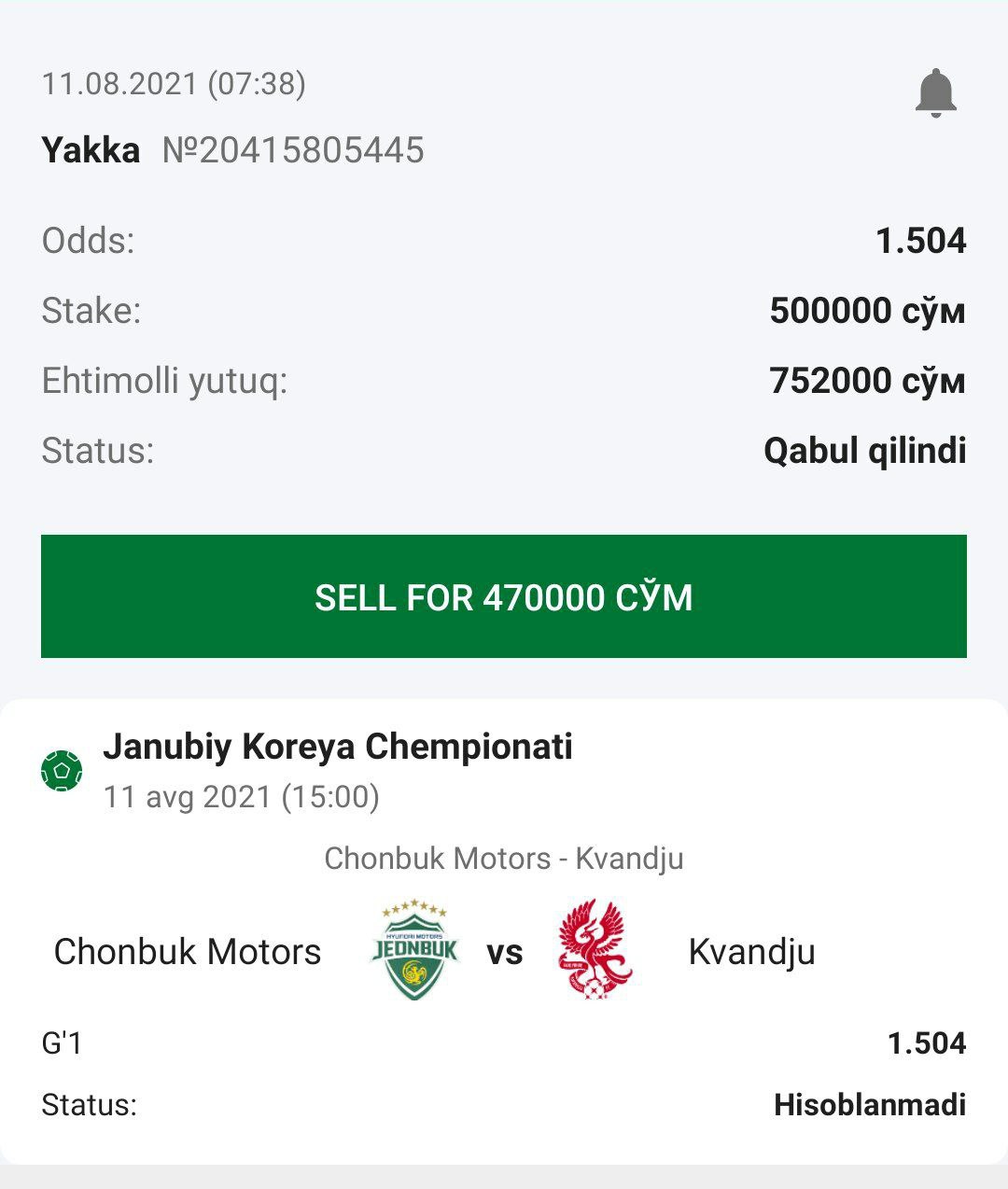 ๐ฅStavka: 2-ning yakka totali (1) dan Koโp