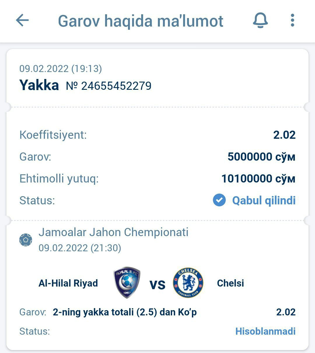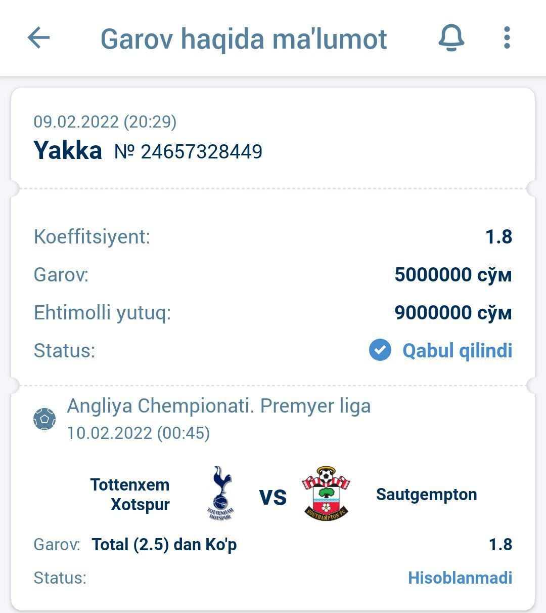 ๐Ÿ”ฅStavka: 2-ning yakka totali (2.5) dan Koโ€˜p