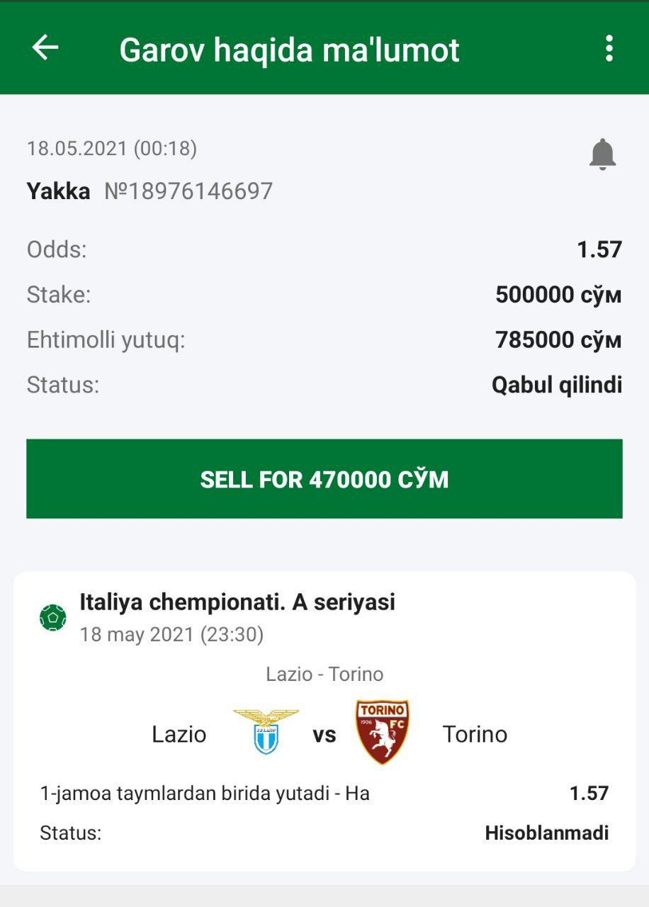 ๐ฐStavka: 1-jamoa taymlardan birida yutadi - Ha