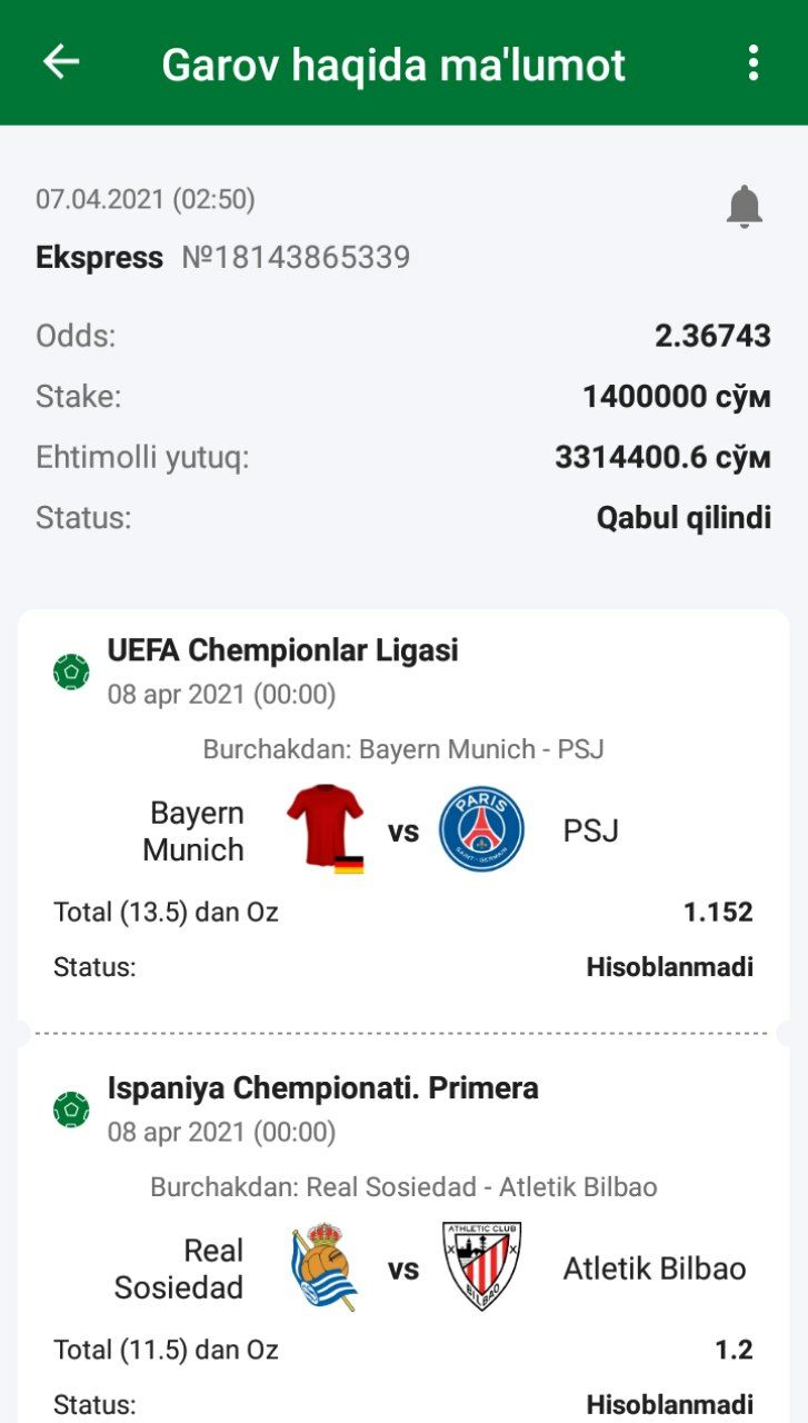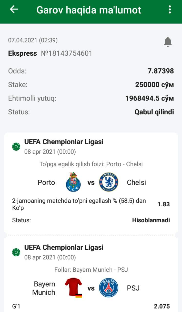 โšฝ๏ธBugun bizni bir qancha kuchli oโ€˜yinlar kutib turmoqda bugun bankingizni sezirali darajada oshirish imkoni bor๐Ÿ’ช