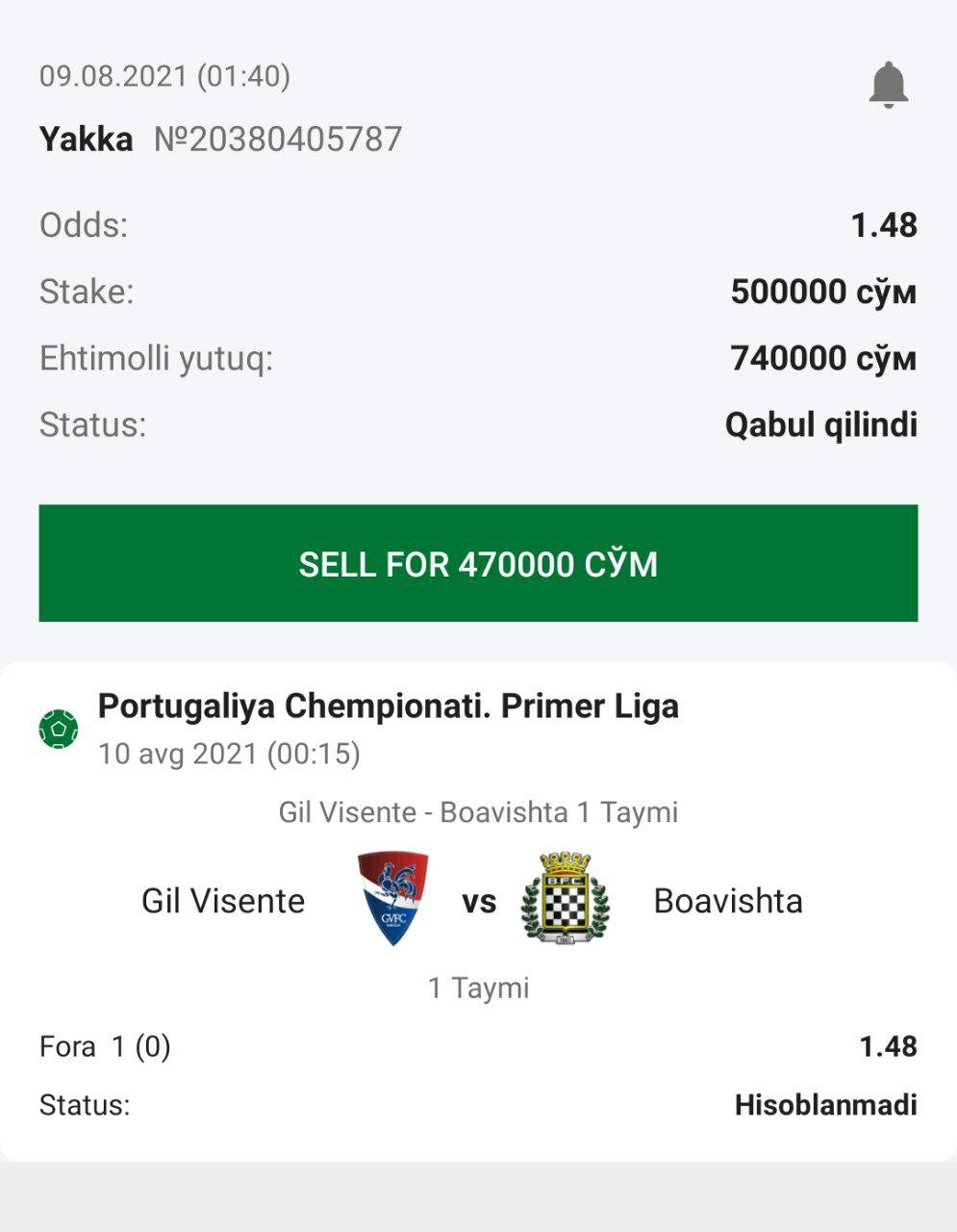 โฐBirnchi Oโyin vaqti: 21:00