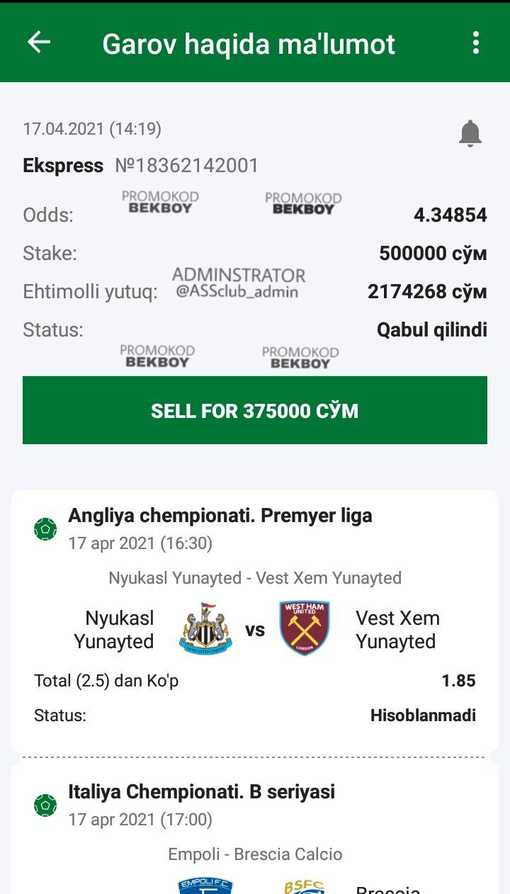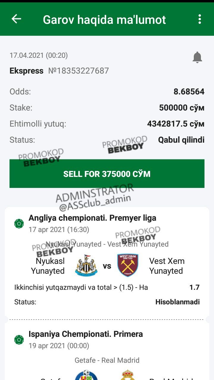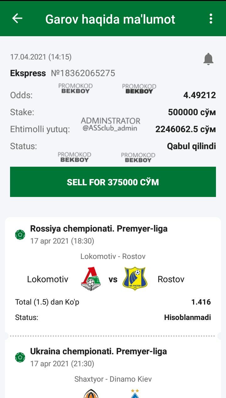 Narxi: 0 so'm ๐ LINE BET KOD: 1E7YV ๐ 1XBET KOD: DNUYV ๐ฐHisobdan 20%dan koสปp tikmang! @ASS_club bilan stavka qiling!