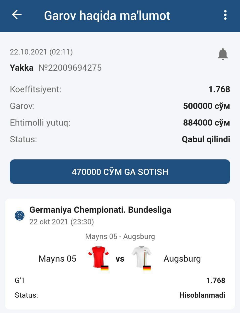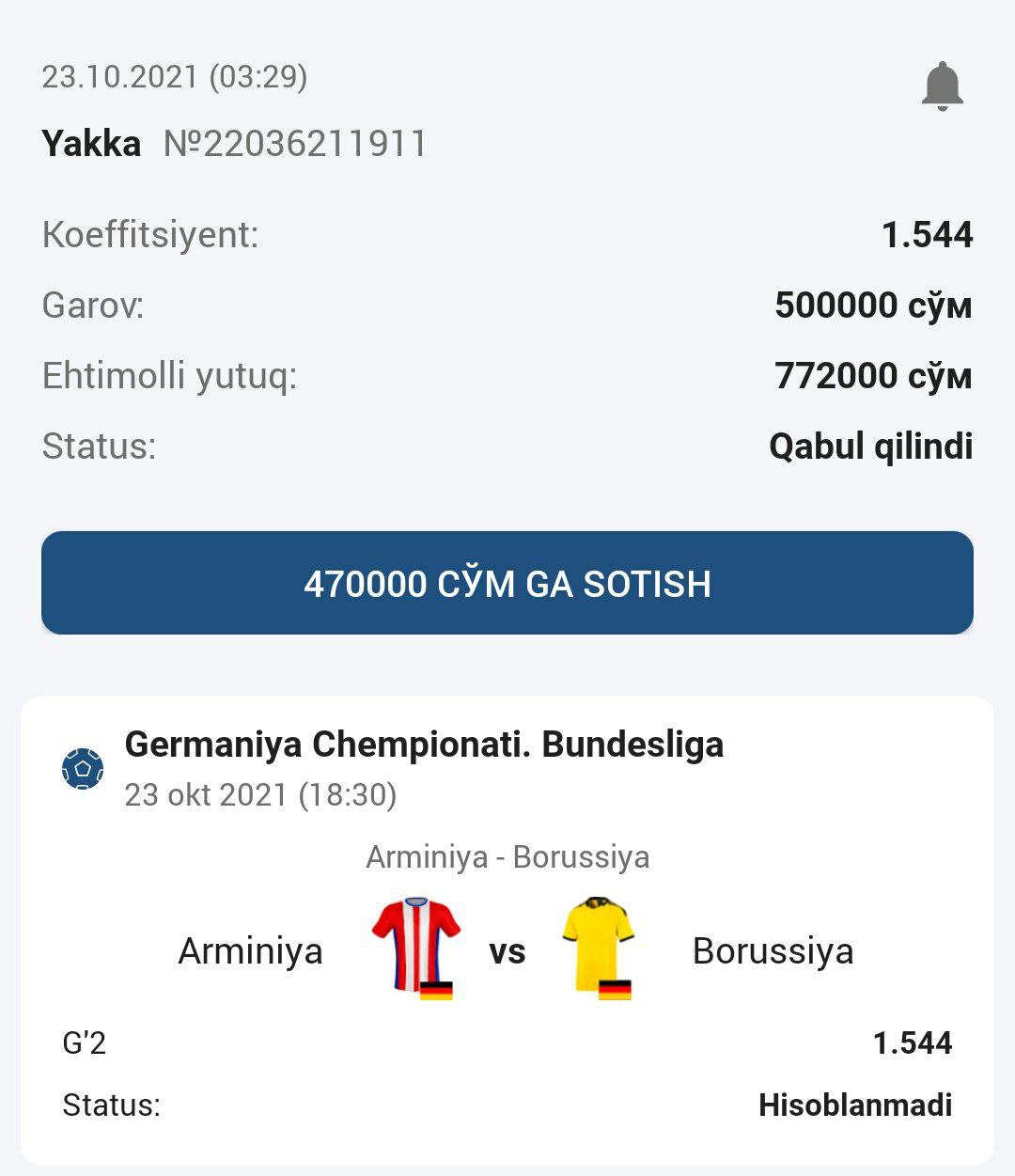 P/s: Shuning bilan shaxsan oโzim ham tafsiya qilaman Bukmekerlar ichida eng ishonchlisi shu!