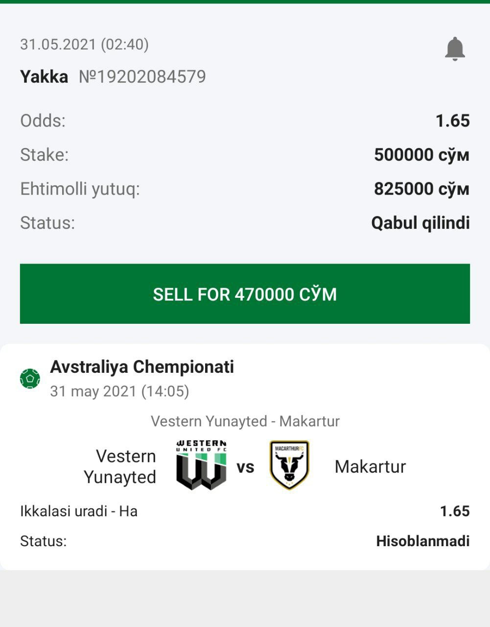 ๐ฐStavka: Birinchisi quruq Gโalaba - Ha