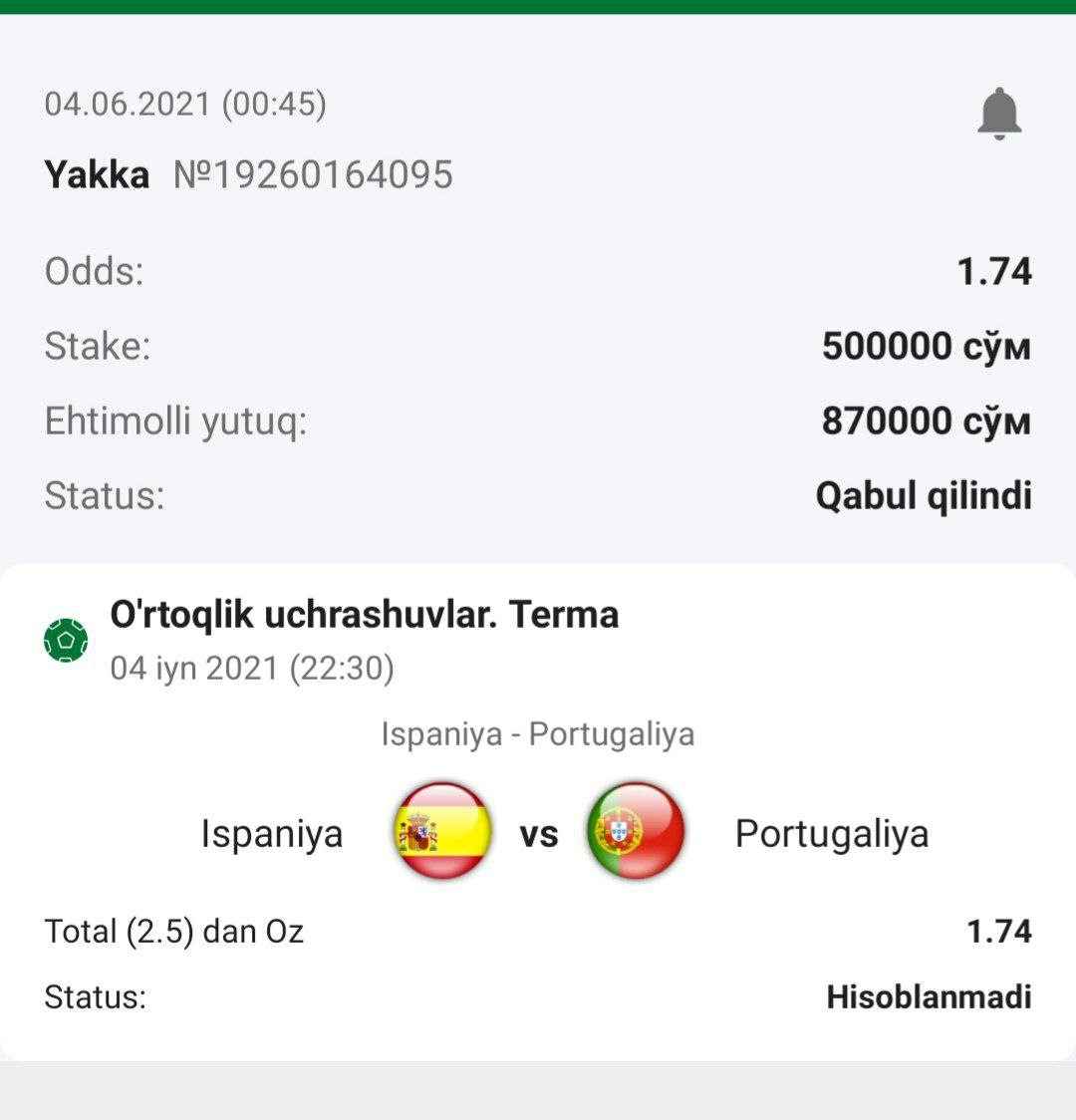 Bugun yaxshi plusga chiqdik, bunaqa stavkalar bitta man beraman faqat sizlarga doโ€˜stlarim!