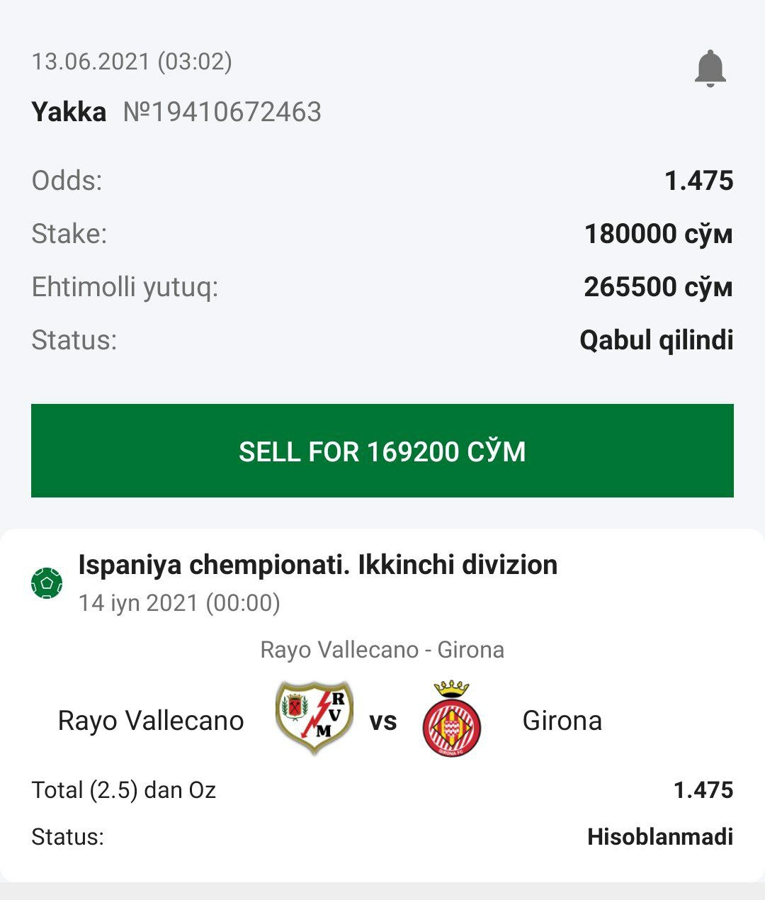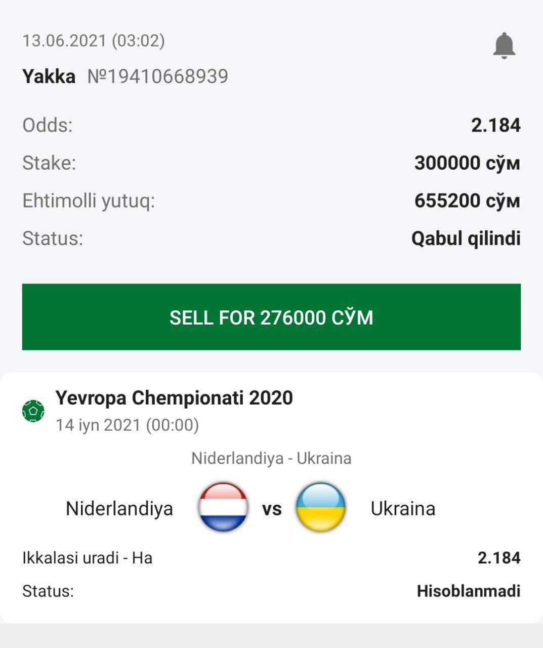 ๐ฐStavka: 1-jamoa taymlardan birida yutadi - Ha