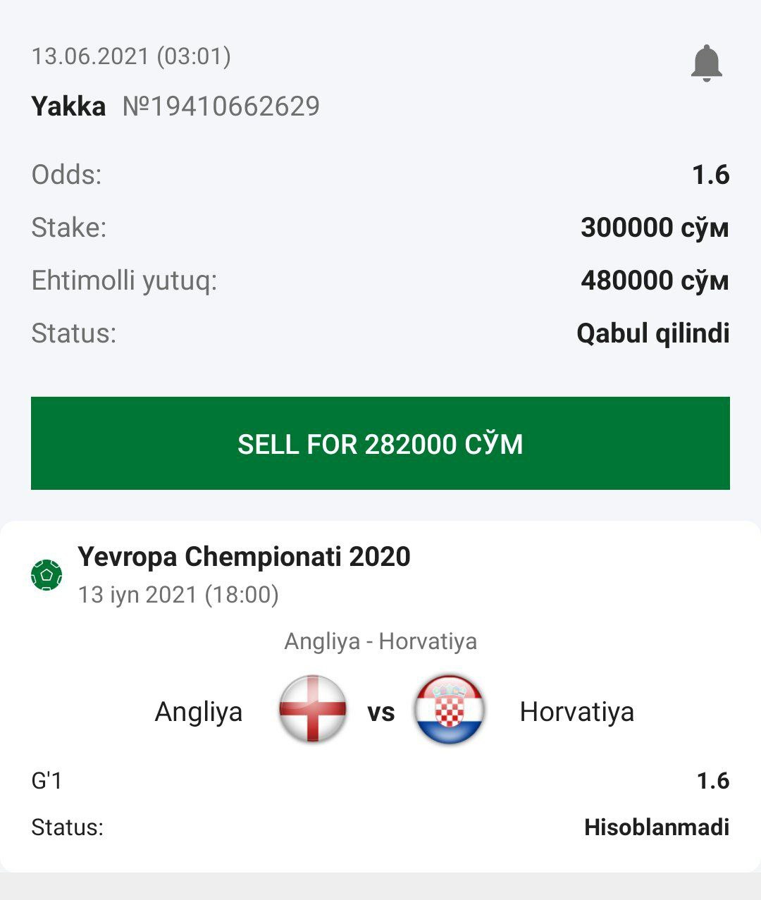 ๐ฐStavka: Gโalaba Angliya
