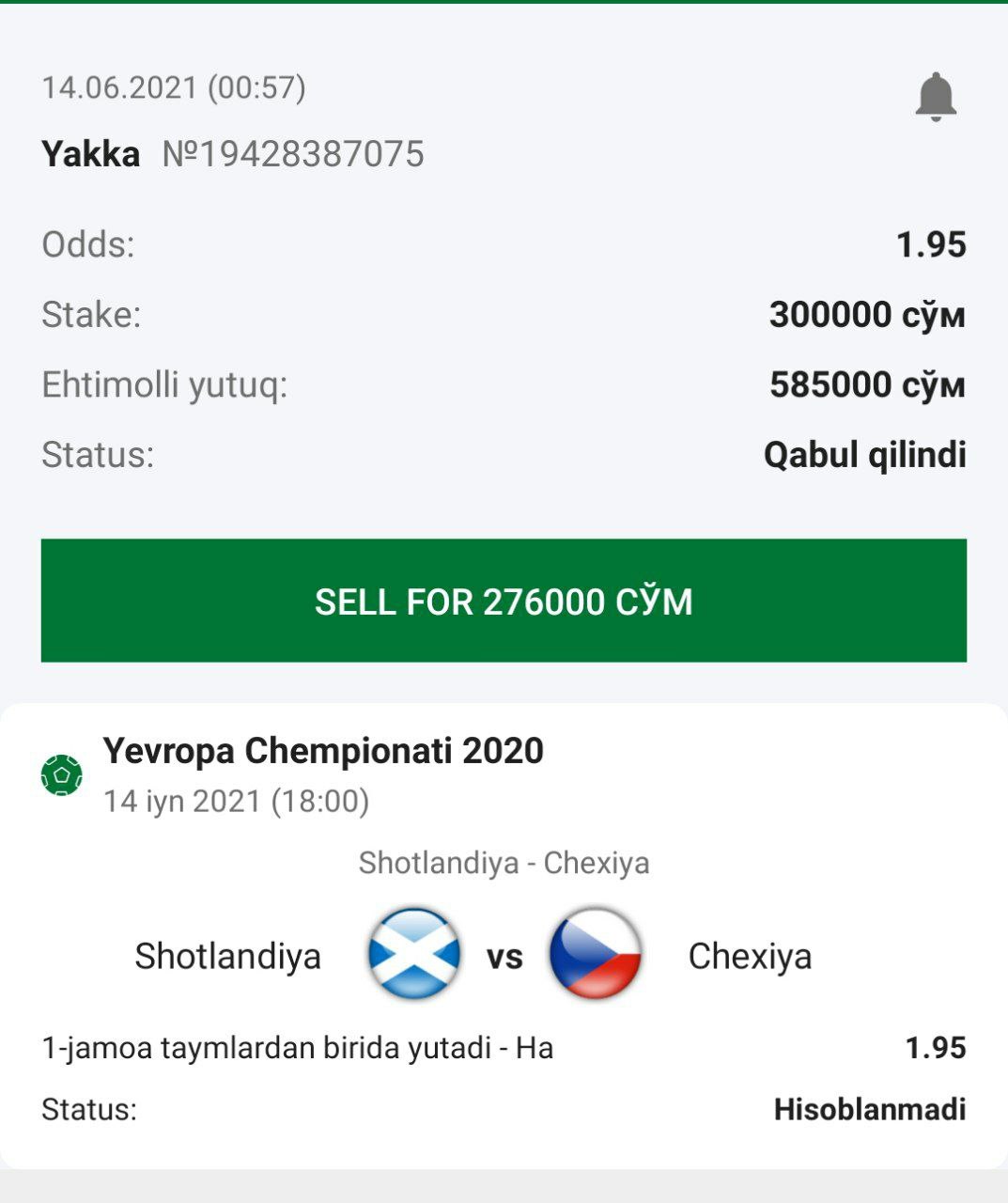 ๐ฐStavka: 1-jamoa taymlardan birida yutadi - Ha
