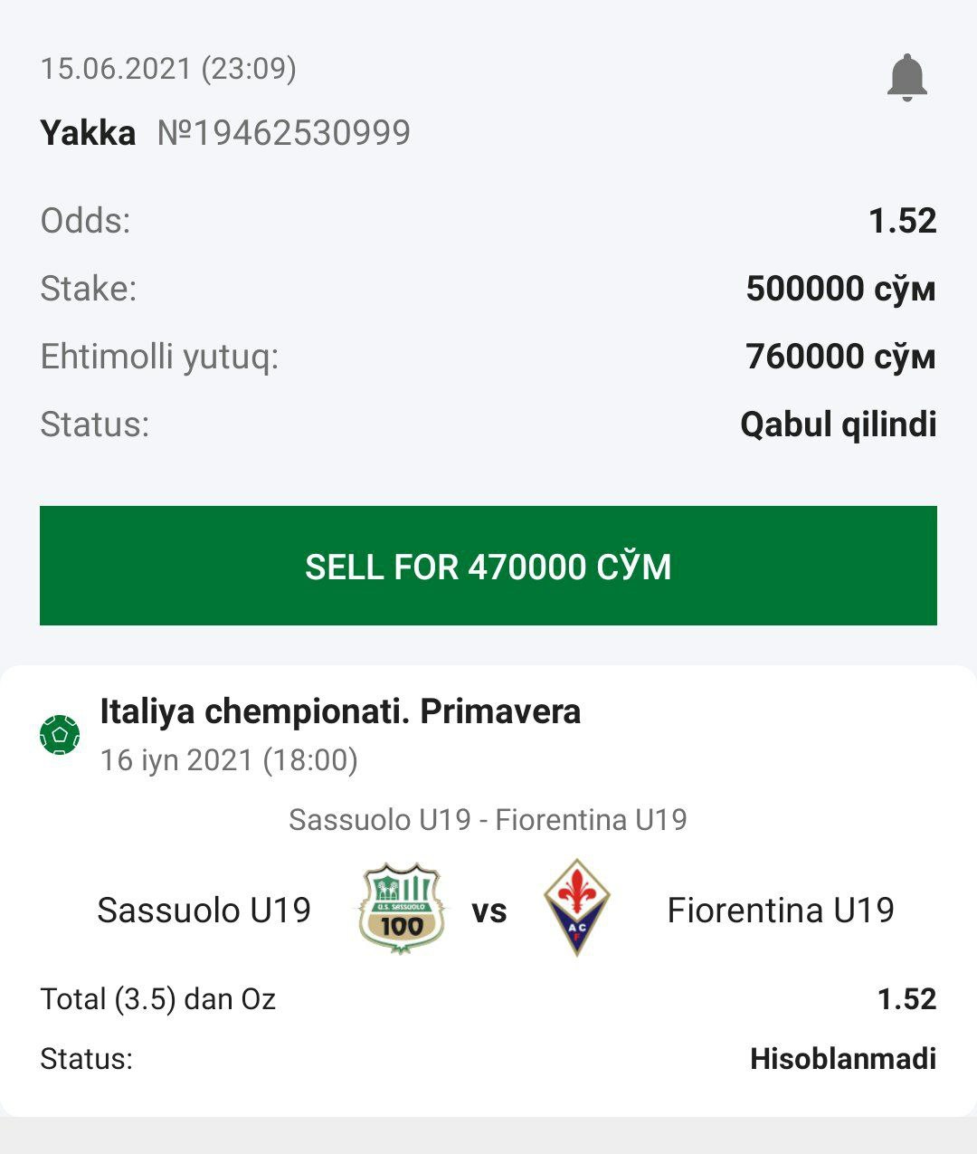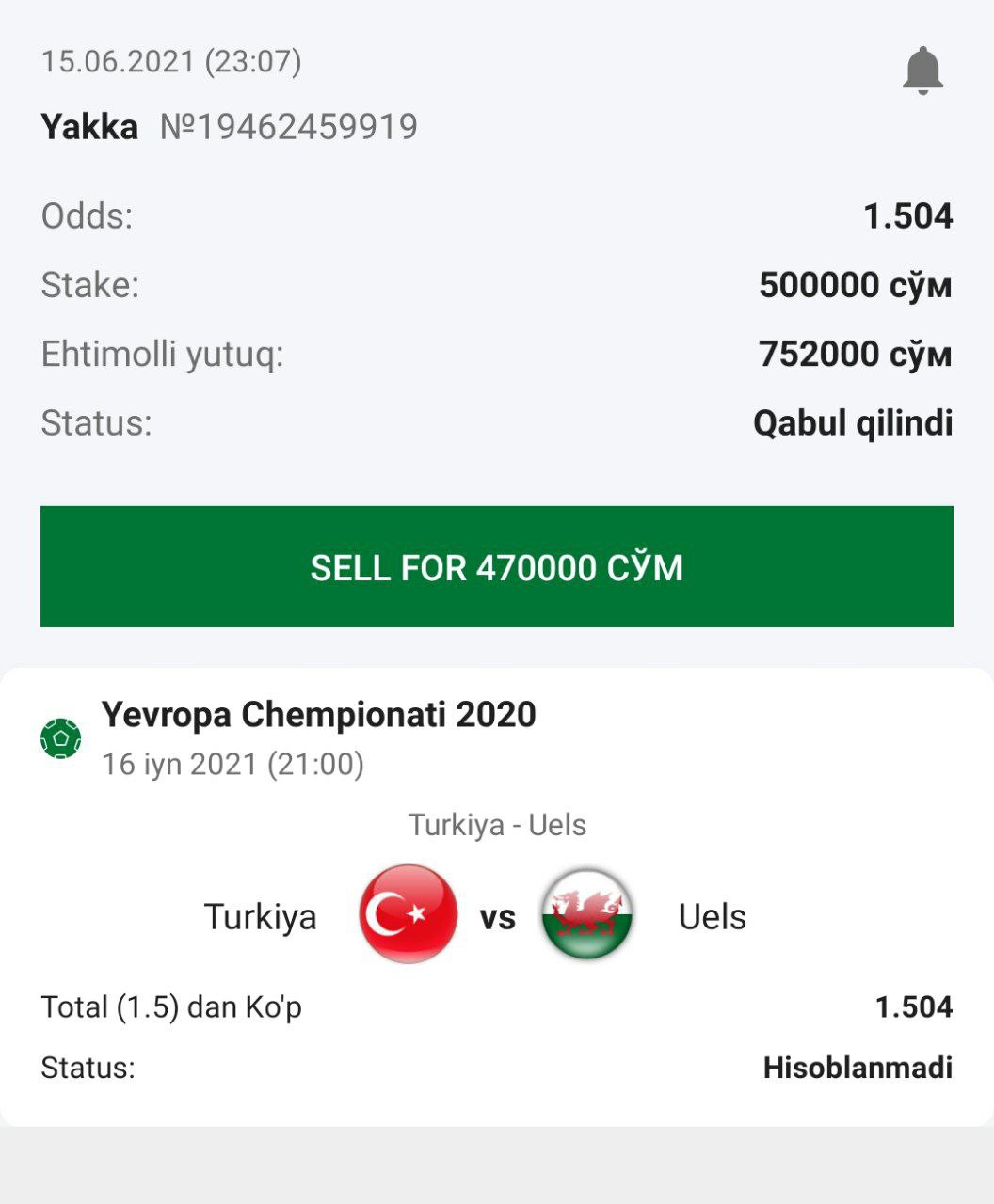 ๐ฅStavka: Total (1.5) dan Koโp