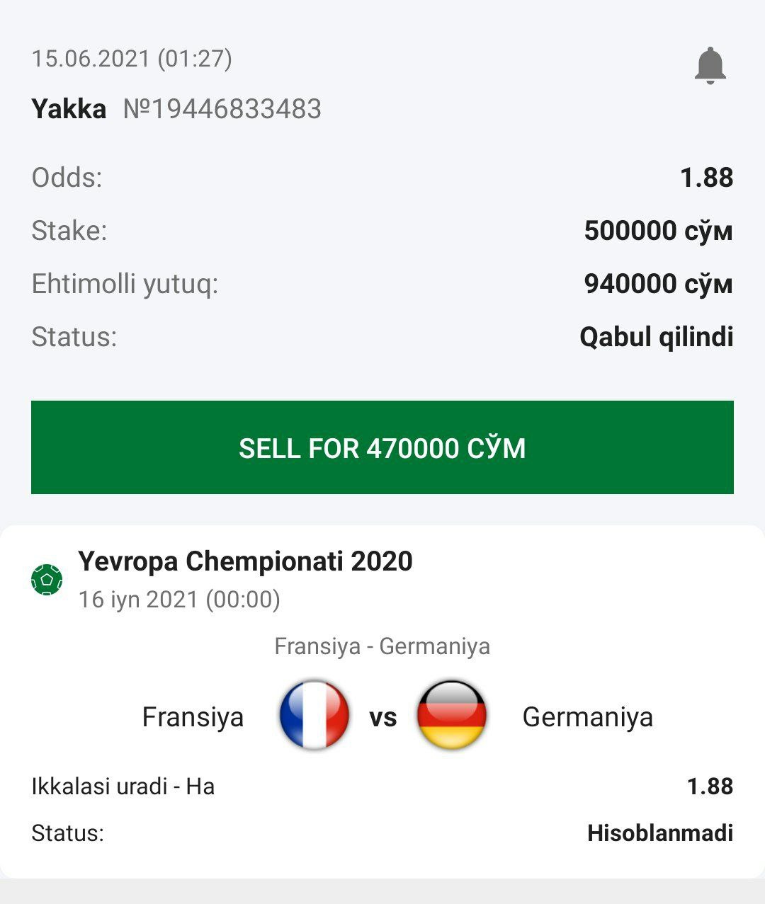 ๐ฐStavka: 1-jamoa birinchi gol (60) daqiqagacha