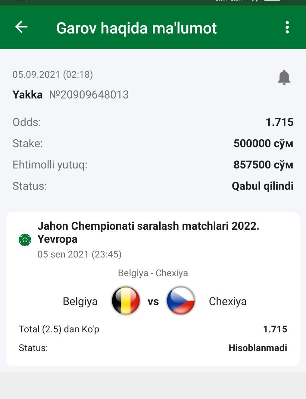 ๐ Belgiya vs Chexiya