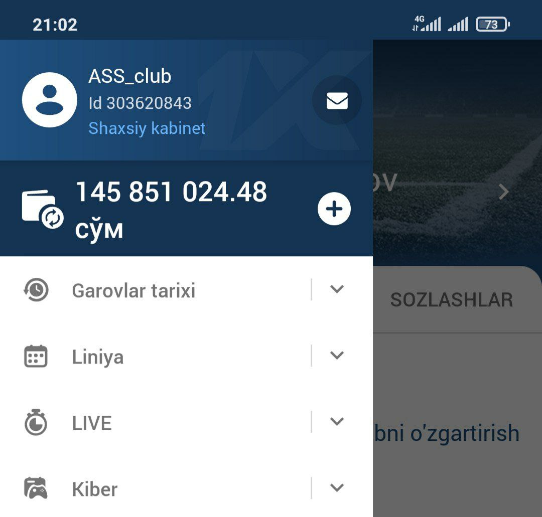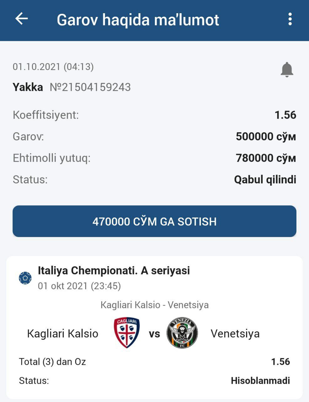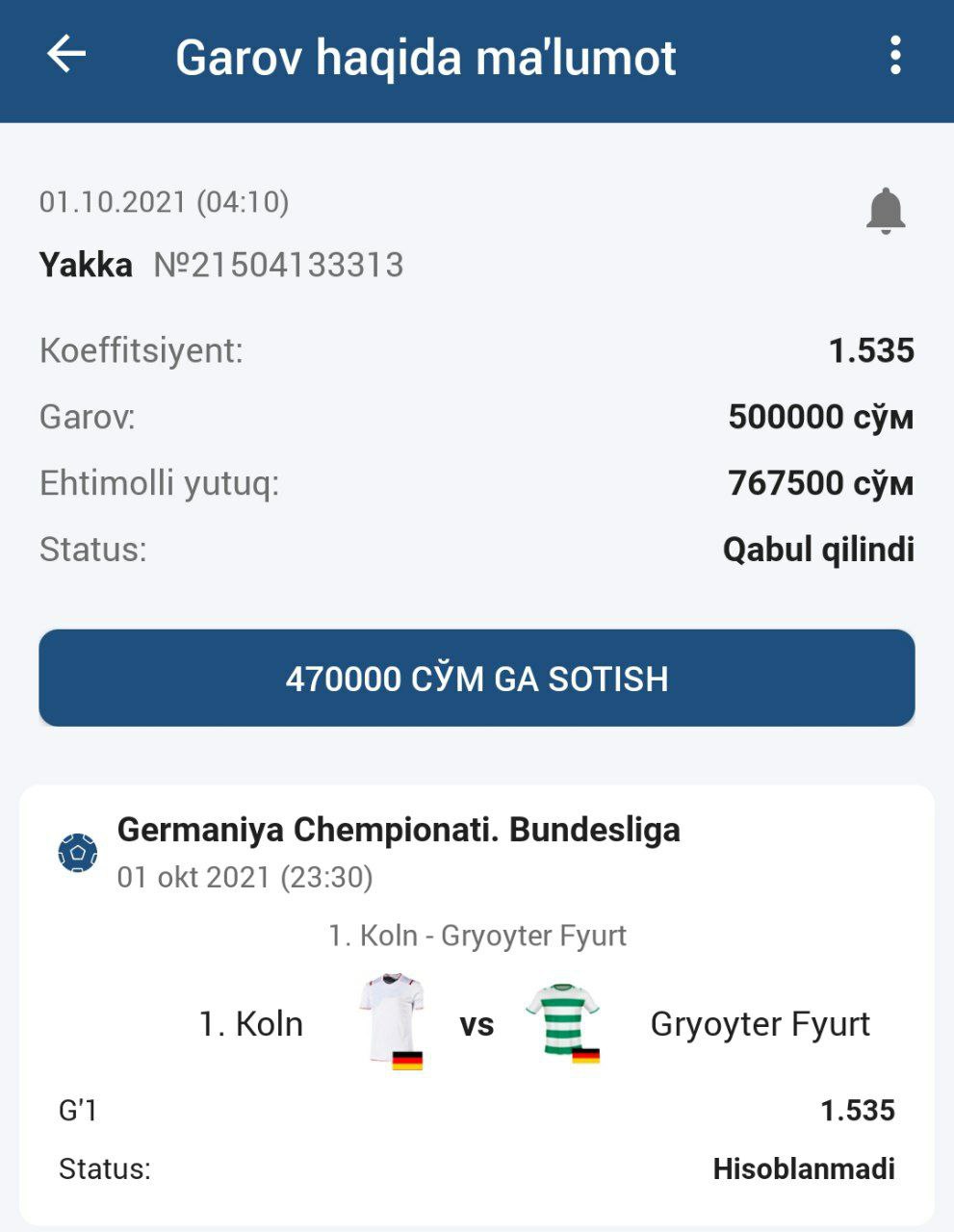 Bizning Promo kod orqali hohlagan bukmekerdan boshqattan roโyxatdan oโting va menga isbot tariqasida hisobingizni skrinshot qilib yuboring
