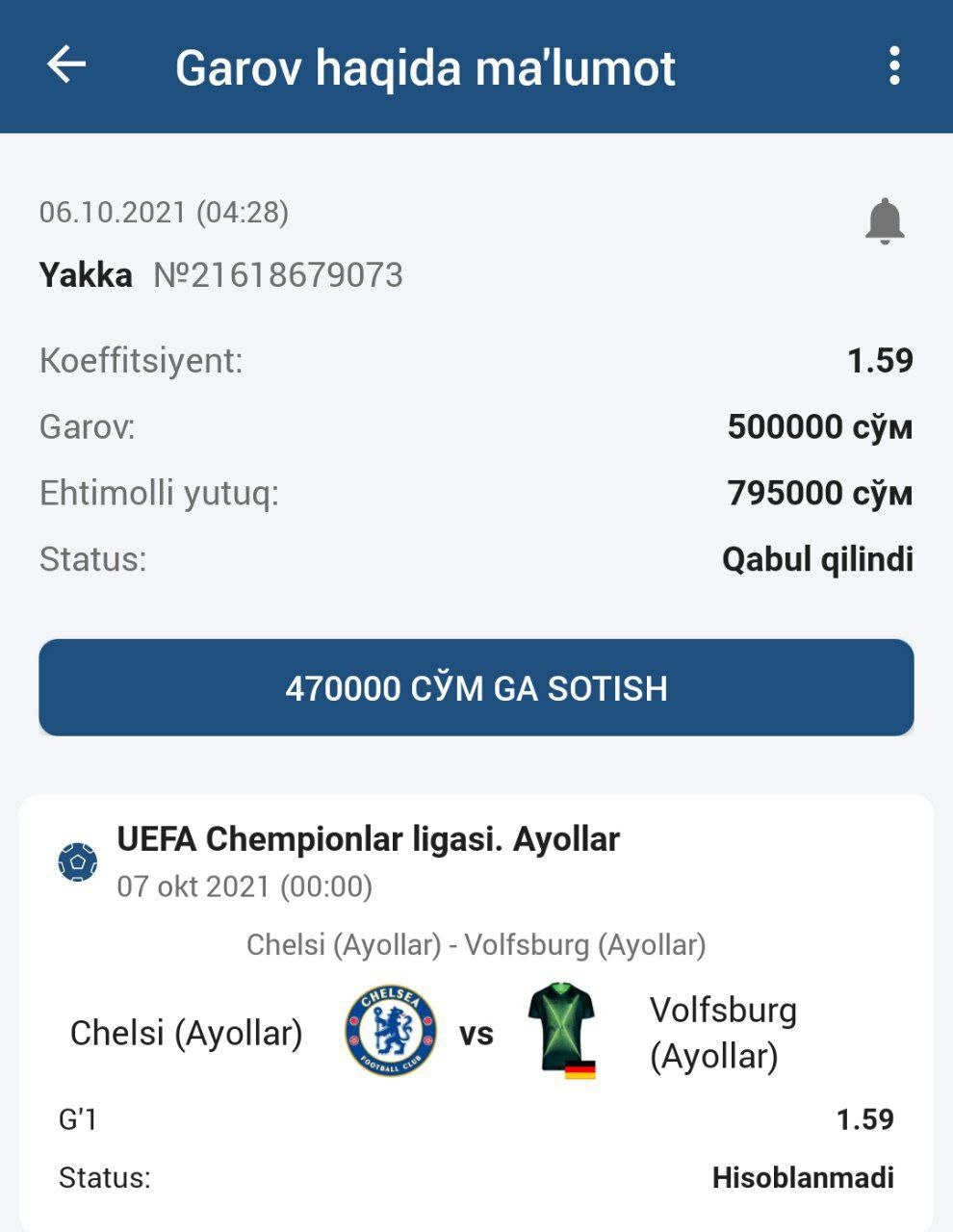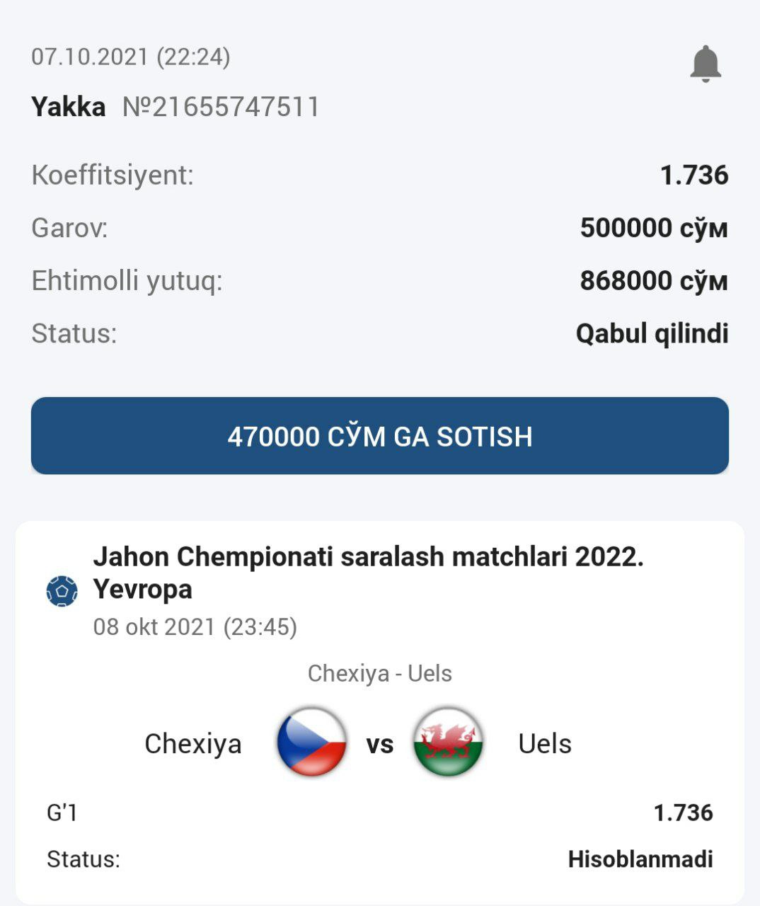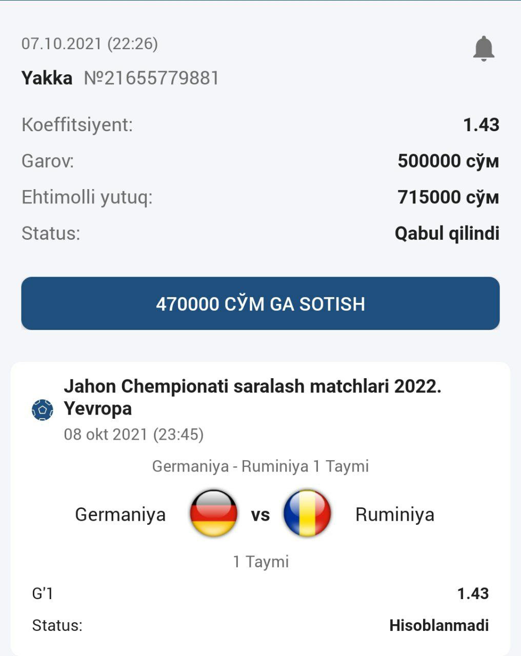 Bizning Promo kod orqali hohlagan bukmekerdan boshqattan roโyxatdan oโting va menga isbot tariqasida hisobingizni skrinshot qilib yuboring