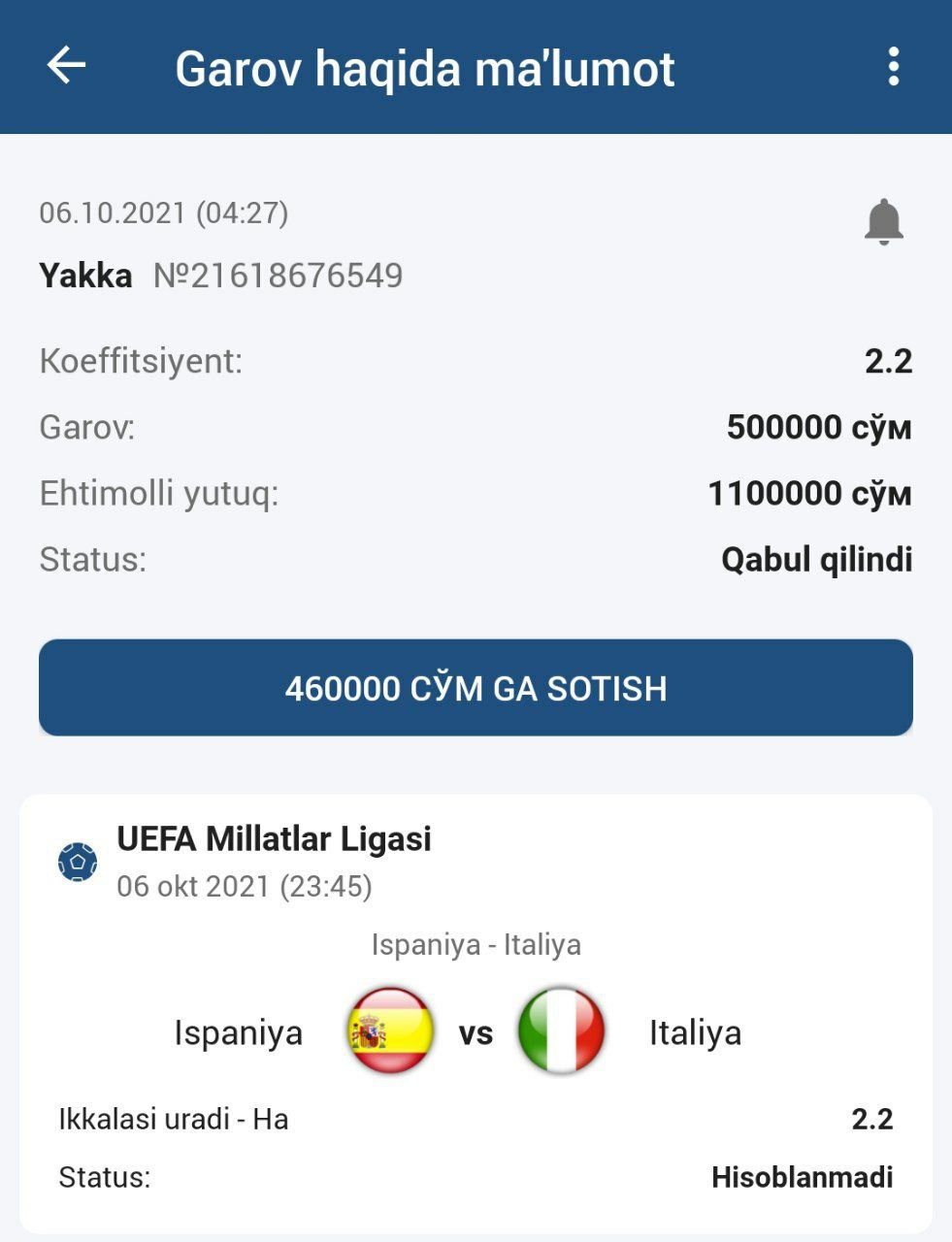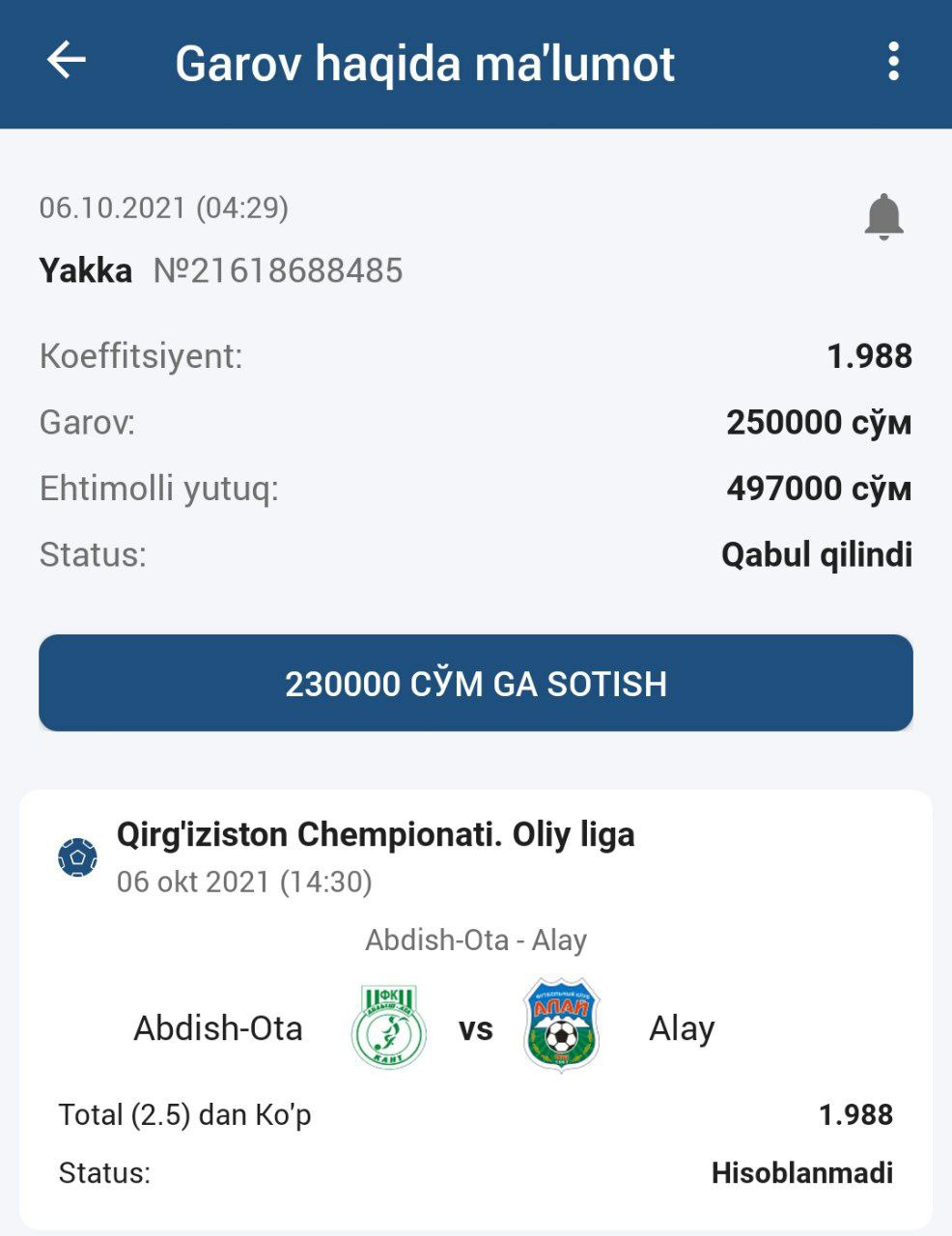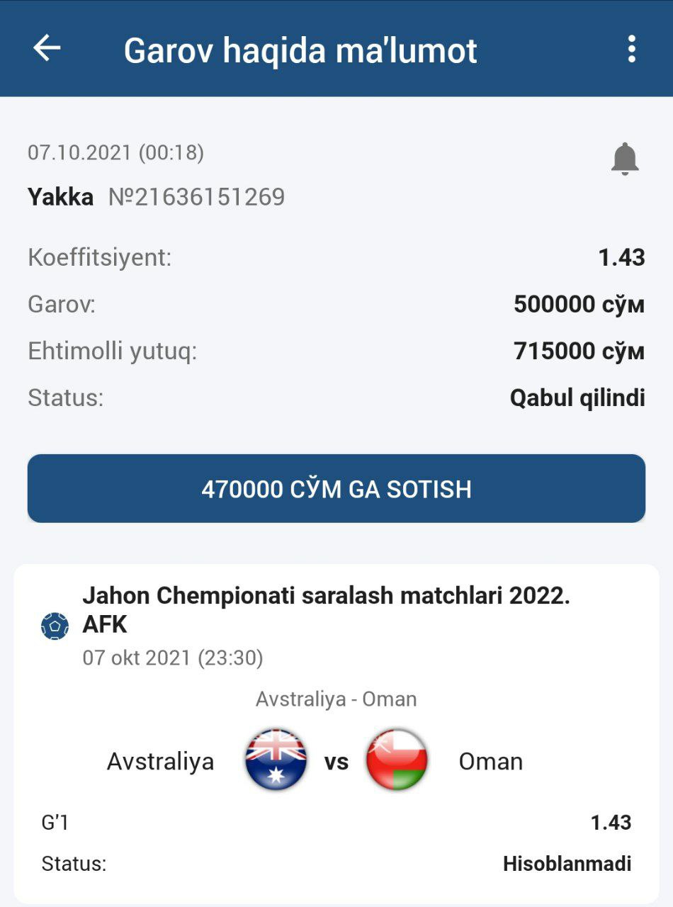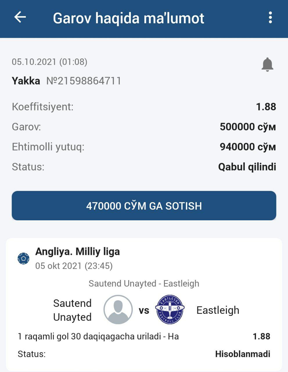 Bizning Promo kod orqali hohlagan bukmekerdan boshqattan roโyxatdan oโting va menga isbot tariqasida hisobingizni skrinshot qilib yuboring