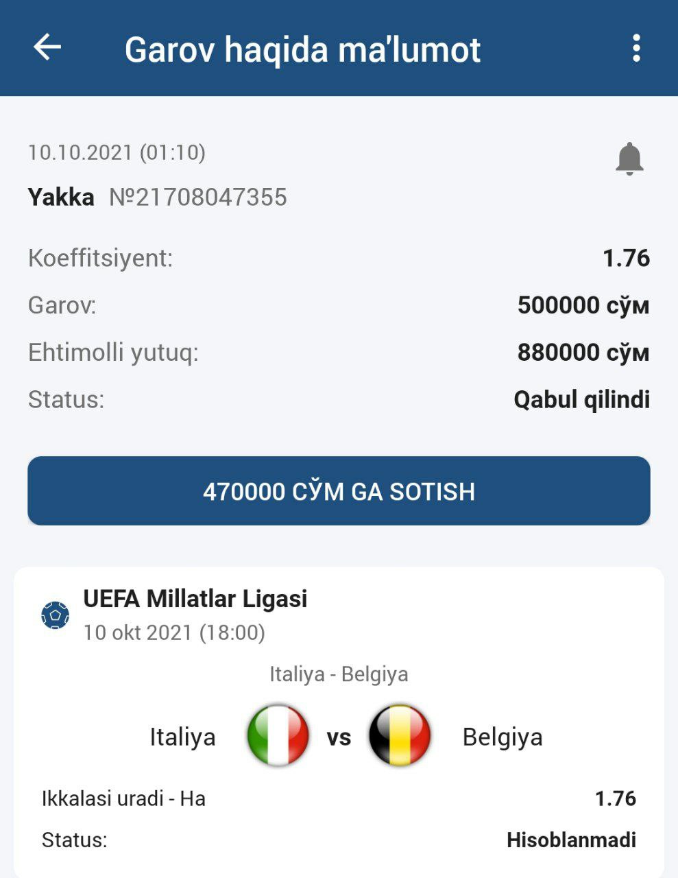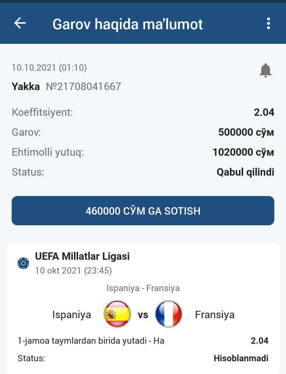 ๐ฅStavka: 1-jamoa taymlardan birida yutadi - Ha